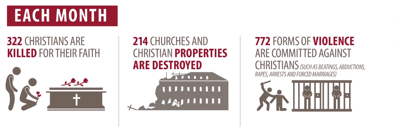In the Middle East, Christians have sizable minorities in places like Syria and Iraq. While governing Muslim regimes in those countries can tend to be pretty tolerant, extremist groups cause daily persecution and death for Christians. ISIS has made as one of its goals the eradication of Christians.